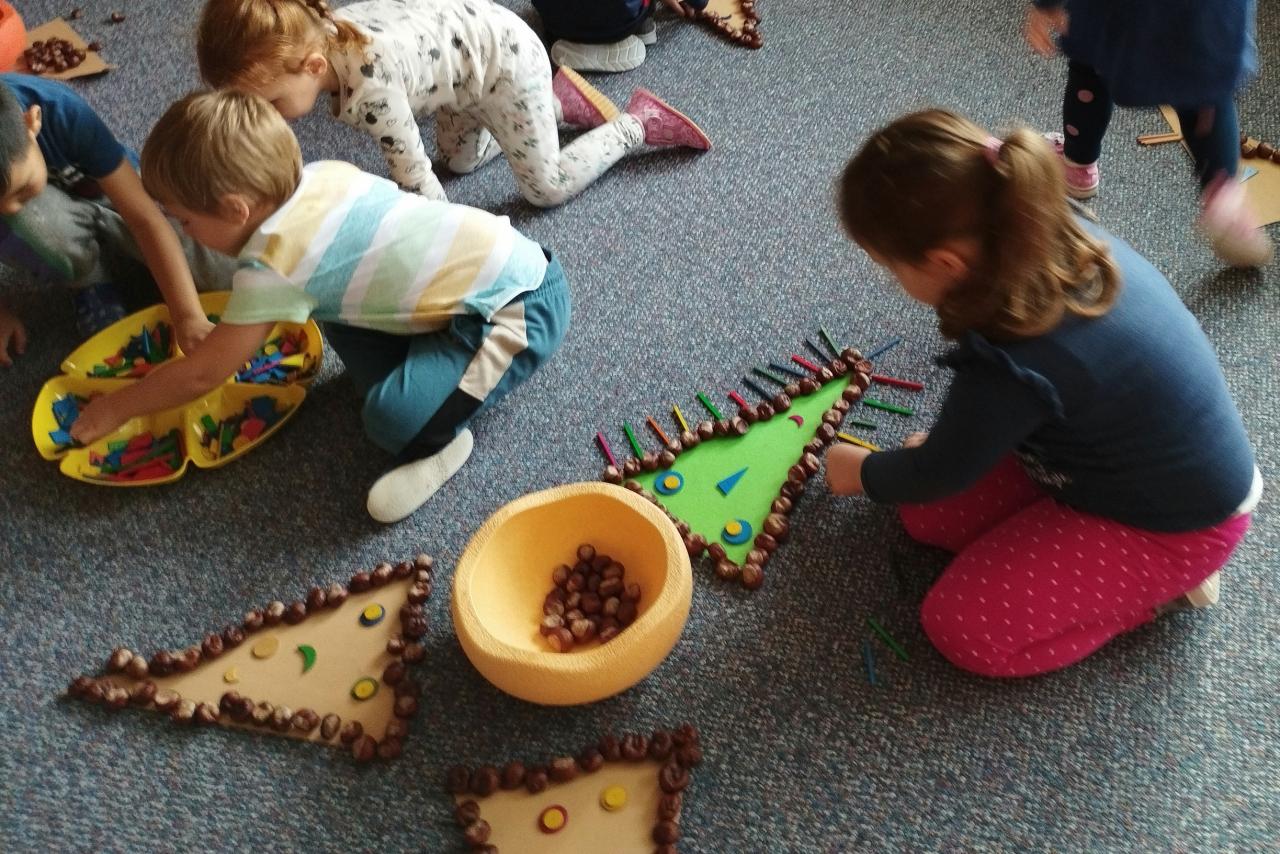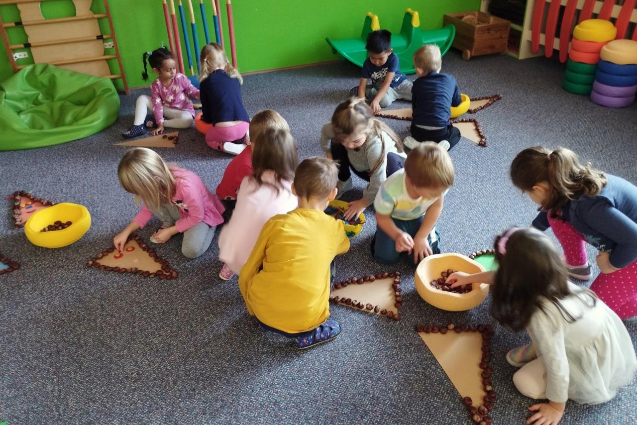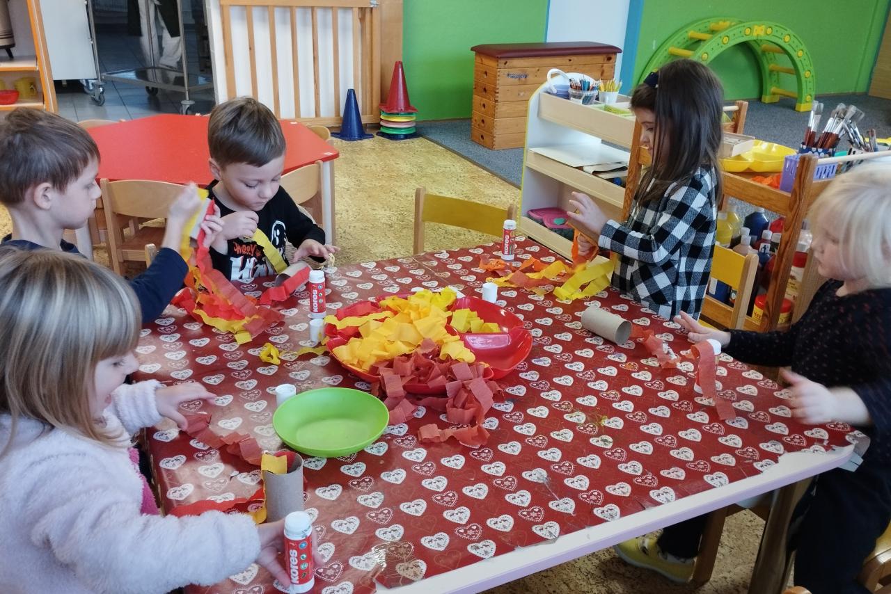 Vítr fouká pofukuje, už k nám zima nakukuje - dělali jsme si honičku ve větru s dračími ocásky, dračí cesty jsme si nakreslili a nakonec k nám i barevní dráčci přiletěli.