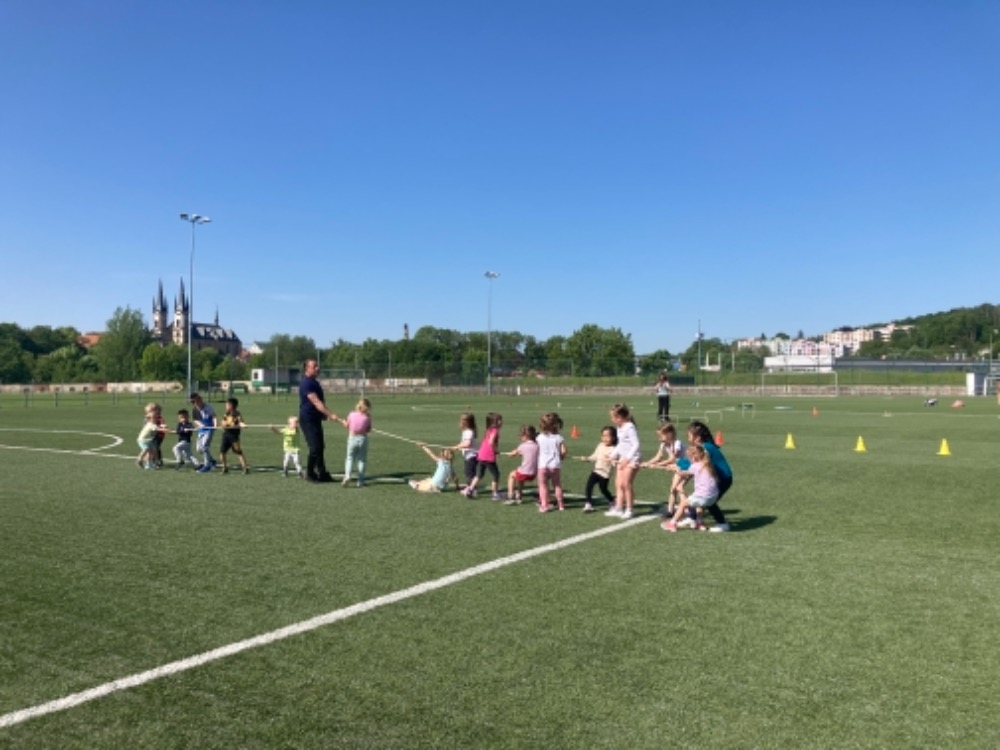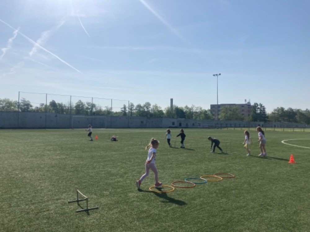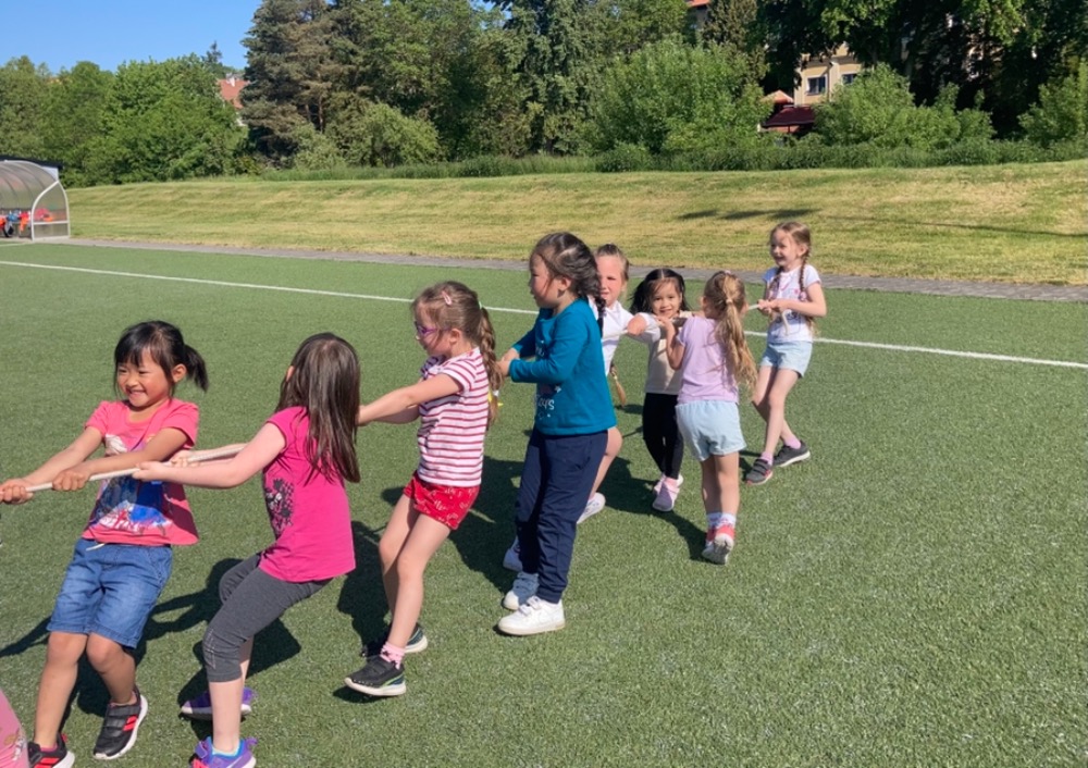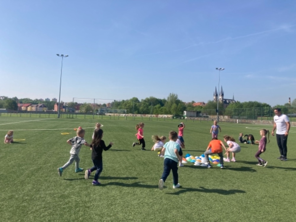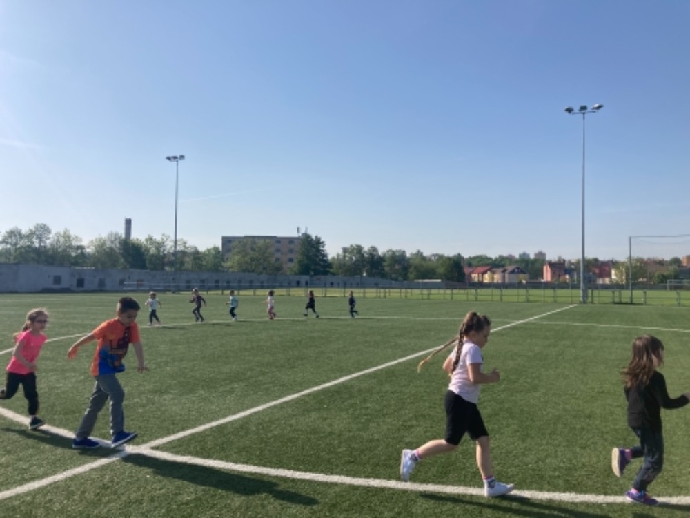 Díky hezkému počasí jsme začali cvičit na fotbalovém hřišti. Hrajeme nové pohybové hry, cvičíme zdravotní cviky a užíváme si spoustu zábavy.
