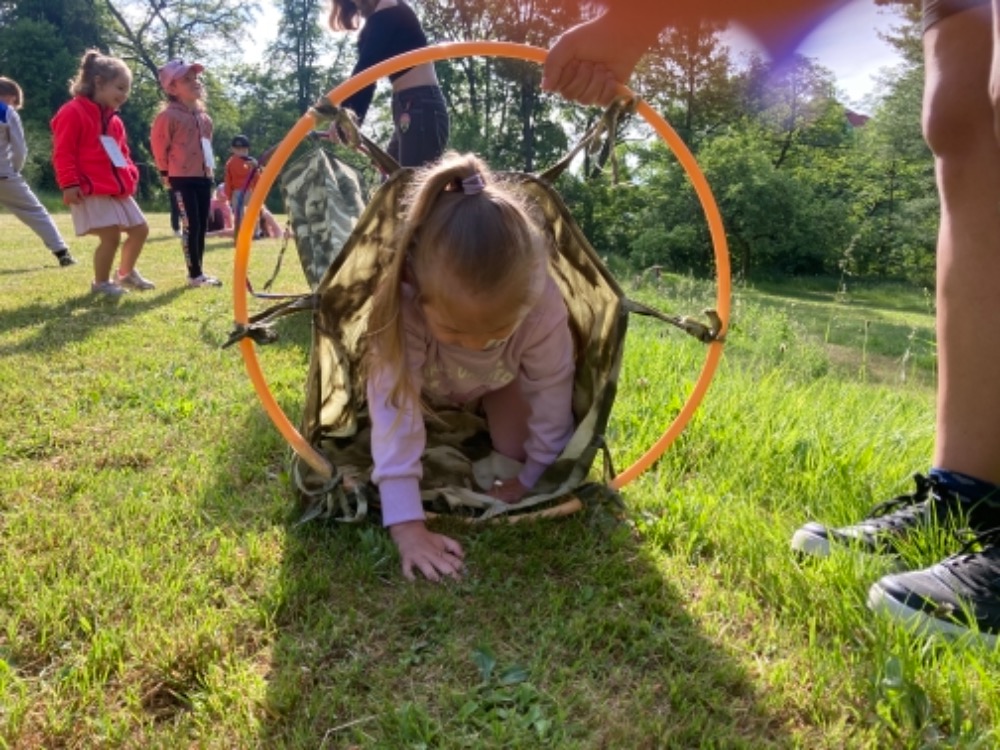 Na zahradě domova mládeže střední zdravotnické školy pro nás studenti připravili zábavné soutěže. V krásném počasí jsme si i upekli buřtíky.