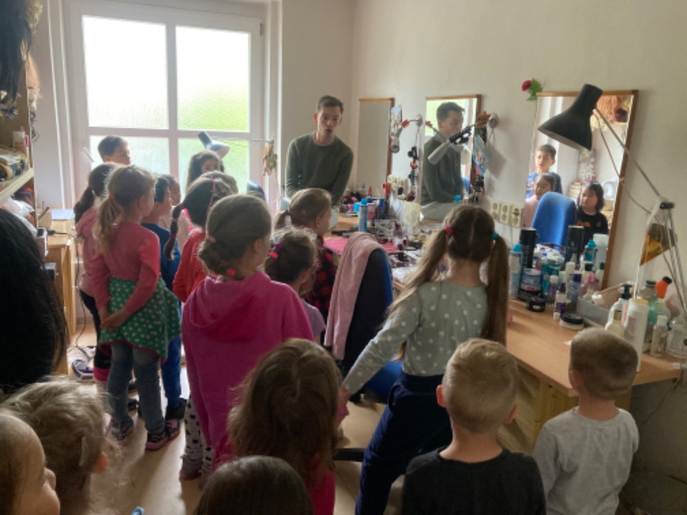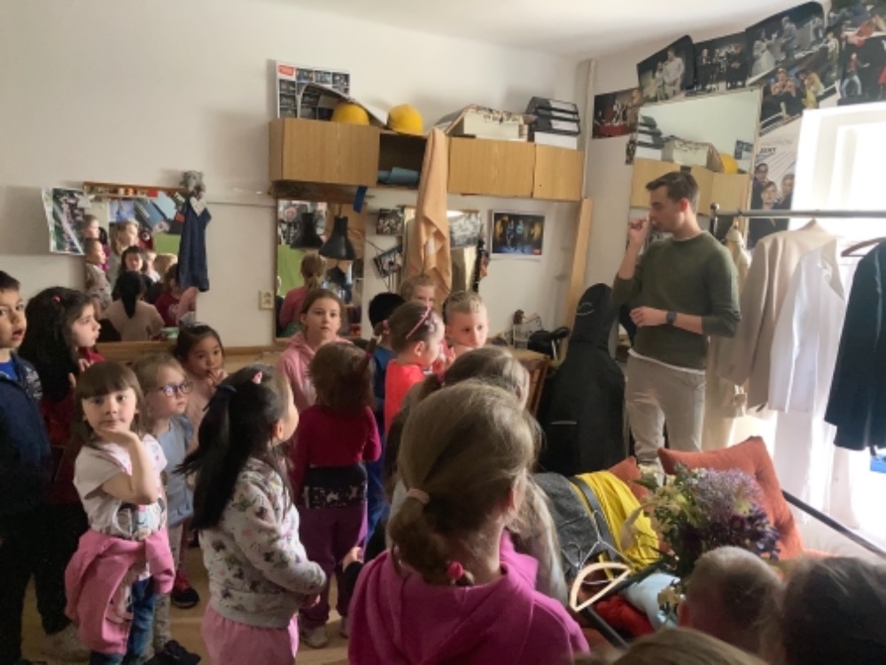 Navštívili jsme Západočeské divadlo v Chebu. Seznámili jsme se s prostory v zákulisí – viděli jsme šatny, maskérny, podium i prostor pod ním. Navštívili jsme i dílny, kde se vyrábí kulisy, nebo šijí šaty.