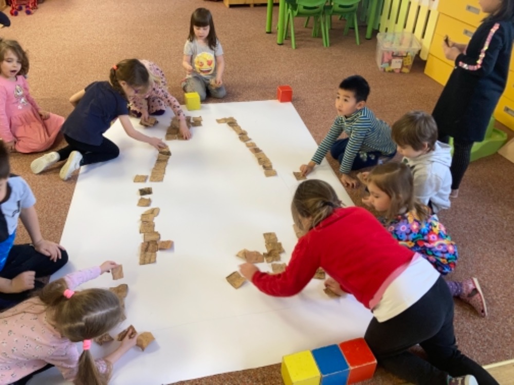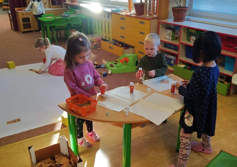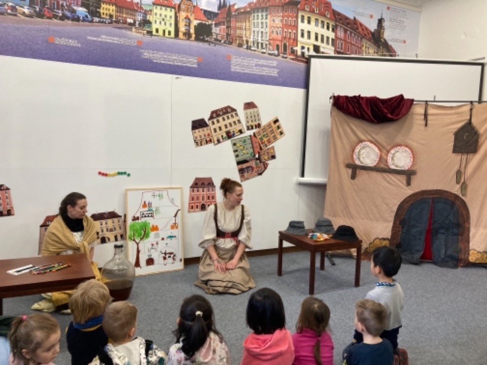 Účastníme se návštěvy Edukačního centra v Grünerově domě na náměstí, kde je pro nás připravený workshop Řemeslníci a obchodníci. Hrajeme si na obchodníky a vyrobené předměty prodáváme. Užíváme si spoustu zábavy a učíme se nové věci.