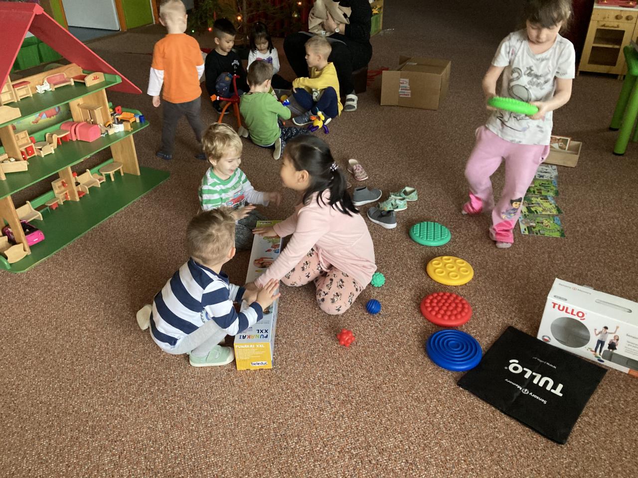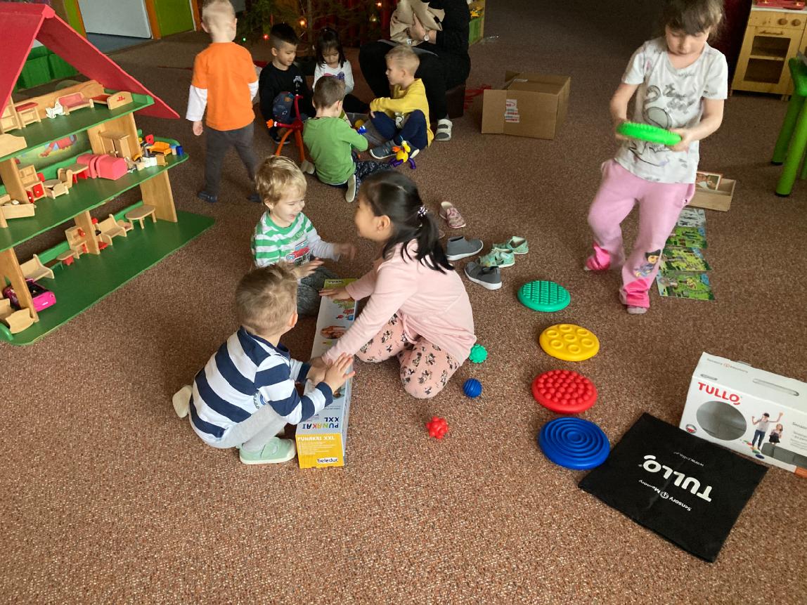 Užíváme si adventní čas. Hrajeme si se sněhem. Vyrábíme přáníčka pro rodiče. Procházíme se po vánočních trzích a prohlížíme si Betlém, stromeček a vánoční výzdobu. Nacvičujeme koncert v kostele. Zpíváme si koledy, zdobíme si stromeček. Dostáváme nadílku od Ježíška a hrajeme si s novými hračkami.